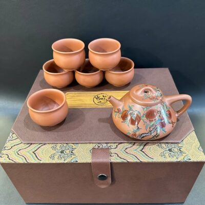 Đặt mua Bộ ấm trà cao cấp thạch biều gốm nê hưng pha trà ngon họa quả đào AT50