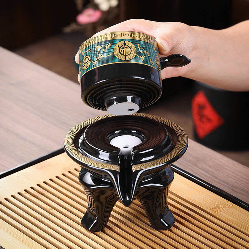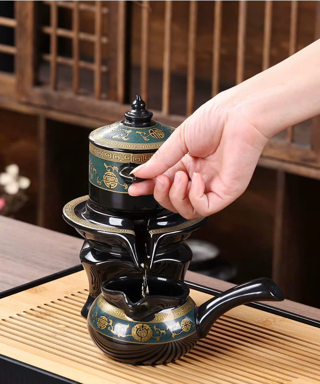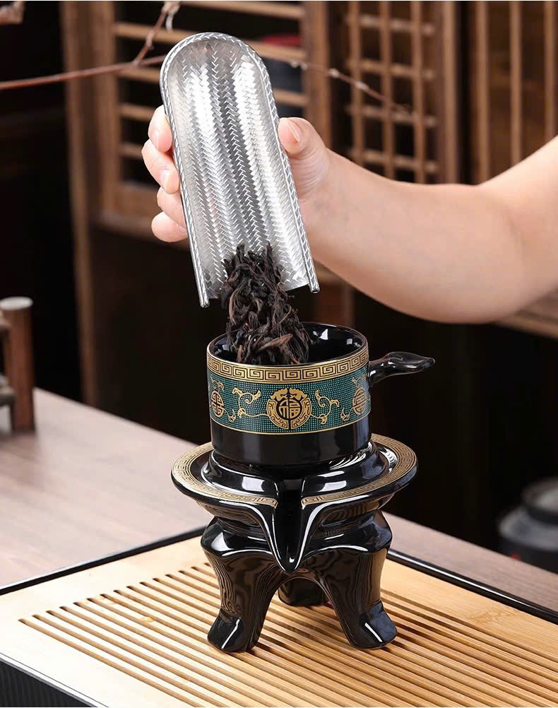 Bộ ấm trà cối xay đẹp pha trà ngon tiện lợi họa tiết phỏng cổ AT04