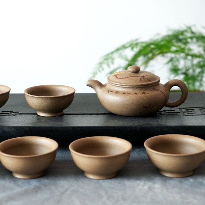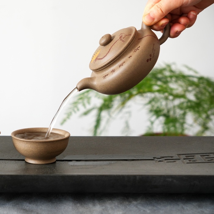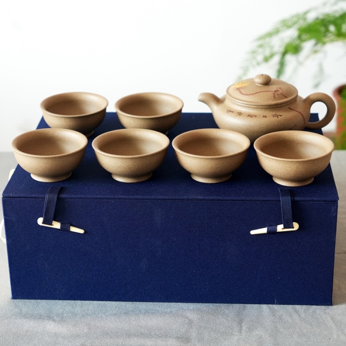 Bộ Ấm Trà Tử Sa Lão Đoàn Nê Biển Phúc Khắc Sen 250ml AT209