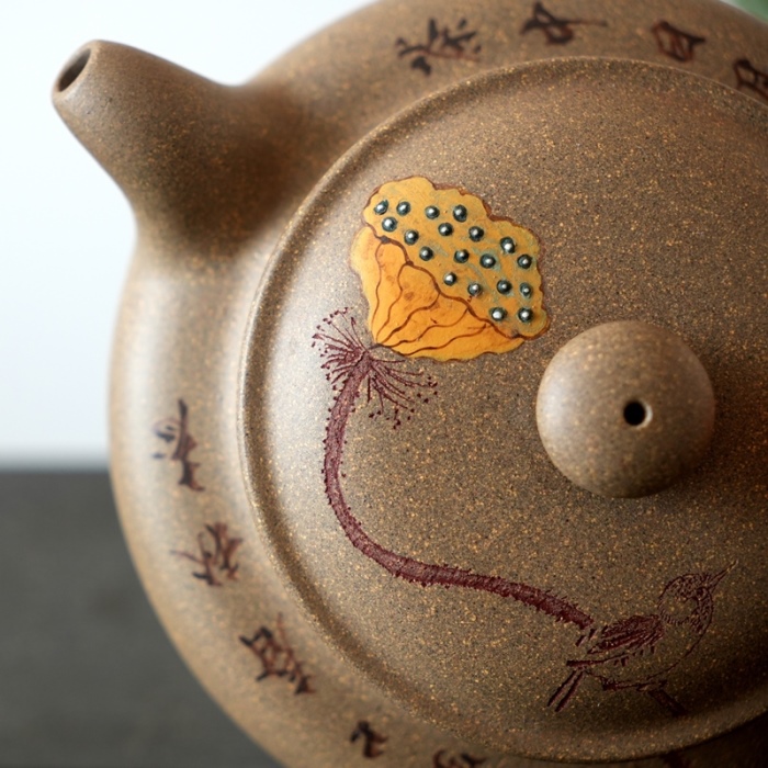 Đặt mua Bộ Ấm Trà Tử Sa Lão Đoàn Nê Biển Phúc Khắc Sen 250ml AT209