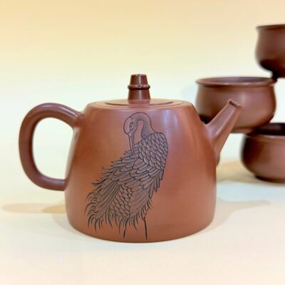 Đặt mua Bộ ấm chén nê hưng cao cấp dáng đức trung khắc hạc đẹp 260ml BAT314