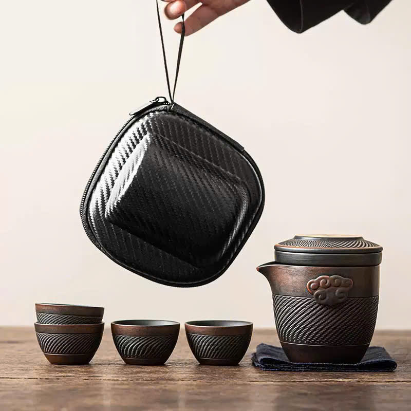 Bộ Ấm Trà Du Lịch 4 Chén Hoạ Tiết Vân Mây AT310