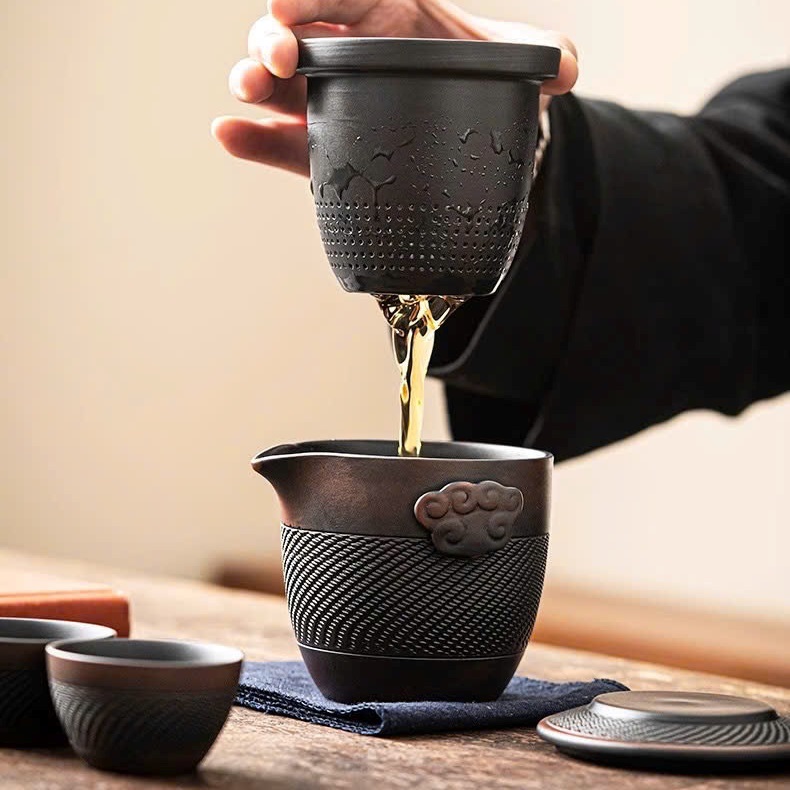 Đặt mua Bộ Ấm Trà Du Lịch 4 Chén Hoạ Tiết Vân Mây AT310