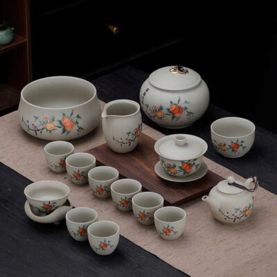 – Các món: 1 ấm trà + 9 chén trà + 1 tống lọc + thuyền trà + tiềm trà + hũ trà + hộp
