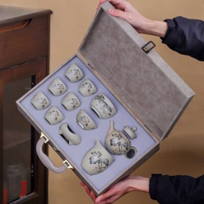 Bộ tách trà đẹp gốm men cổ cao cấp làm quà biếu hộp đẹp AT11