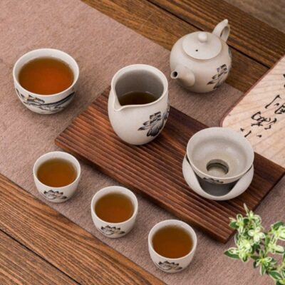 - Các món: 1 ấm trà + 7 chén trà + 1 tống lọc