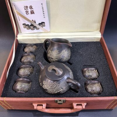 – Các món: 1 ấm trà, 1 chén tống, 6 chén quân kèm hộp đựng da đẹp