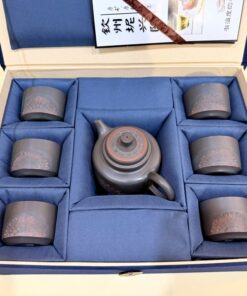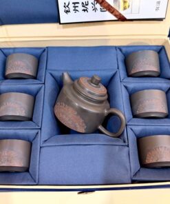 Đặt mua Bộ ấm trà Nê Hưng dáng Đức Trung khắc trống đồng 250ml AT103