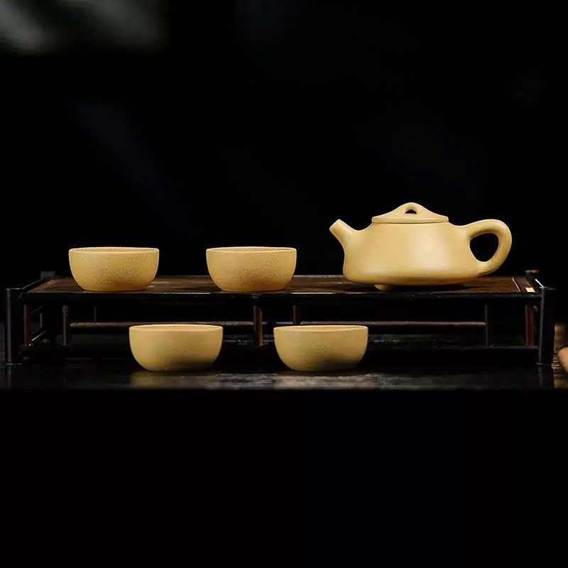 Bộ ấm tử sa Nghi Hưng đoàn nê thạch biều 200ml kèm 4 chén AT34