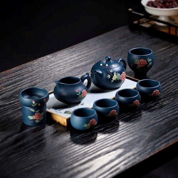 Đặt mua Bộ ấm tử sa Nghi Hưng lục nê tây thi họa hoa mẫu đơn 230ml AT32