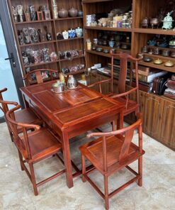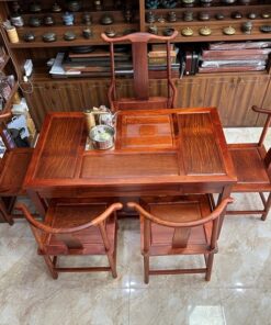 Bộ bàn ghế uống trà gỗ hương lào 5 ghế 1m2 pha trà tiện lợi thợ việt nam làm