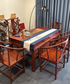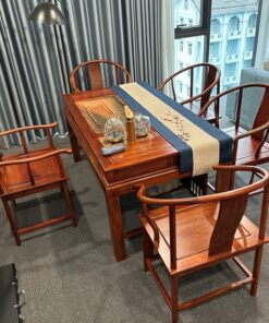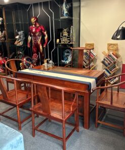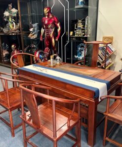 Bộ bàn ghế uống trà gỗ hương lào làm trà thất deco cùng iron man đẹp bàn 1m6 5 ghế