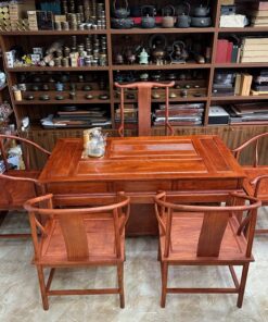 Bộ bàn ghế uống trà kiểu trung quốc gỗ hương đá 1m6 đẹp BT39