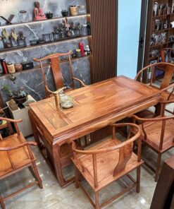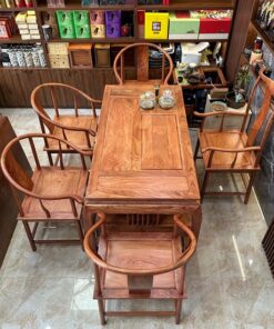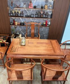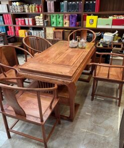 Bộ bàn ghế uống trà kiểu trung quốc gỗ hương đá 1m6 mặt gỗ BT43