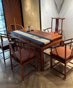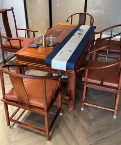Đặt mua Bộ bàn ghế uống trà kiểu trung quốc gỗ hương lào 1m8 khay đá BT32