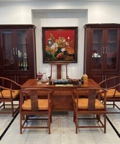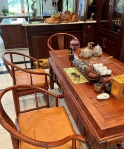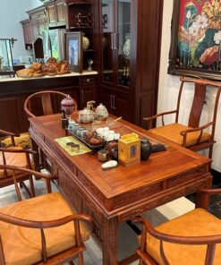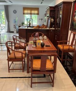 Bộ bàn ghế uống trà kiểu trung quốc gỗ hương lào làm trà thất nhà sếp tổng 1m8