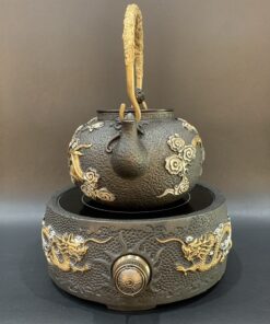 Đặt mua Bộ bếp đun nước pha trà cao cấp kèm ấm tetsubin gang đắp Rồng BD18