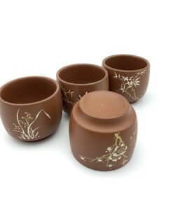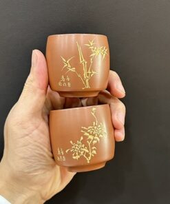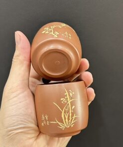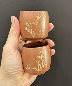 Bộ chén uống trà cao cấp mai lan cúc trúc gốm nê hưng hoả biến đỏ đẹp thủ công 70ml.