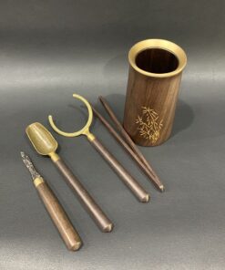 – Bộ sản phẩm gồm: Ống đựng, gắp chén, xúc trà, dao tách trà bánh, cây đỡ chén