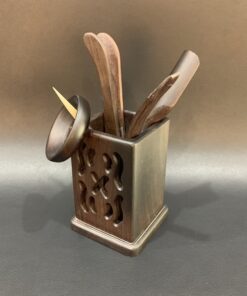 Bộ dụng cụ pha trà gỗ gụ dáng vuông nhiều món bền đẹp KH05