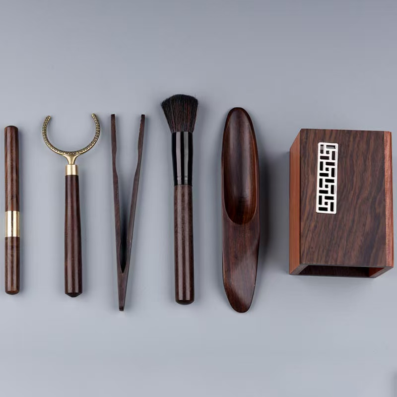 – Bộ sản phẩm gồm: Ống đựng, gắp chén, xúc trà, dao tách trà ,chổi trà,đỡ chén