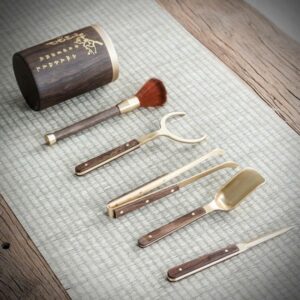 – Gồm: Lọ đựng, xúc trà, gắp chén, chổi, dao tách trà phổ nhĩ, cây dâng trà