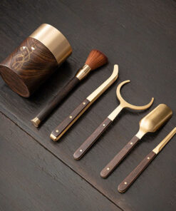 – Bộ sản phẩm gồm: Ống cắm, xúc trà, gắp chén, cây dâng chén, dao tách trà, chổi