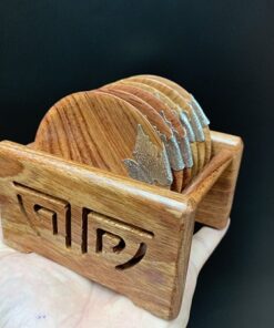 Bộ lót chén gỗ hương tròn đính lá bạc kê ly trà đẹp LC22