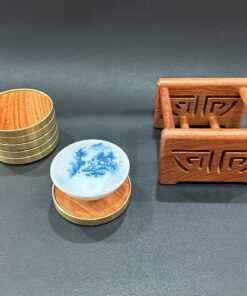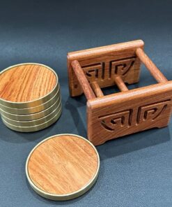 Bộ lót chén trà cao cấp gỗ hương dáng tròn viền đồng kê ly đẹp LC41.
