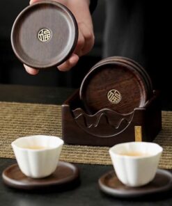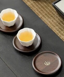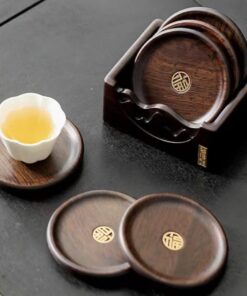 Đặt mua Bộ lót ly trà gỗ gụ dáng tròn chữ phúc dùng kê chén trà đẹp LC10