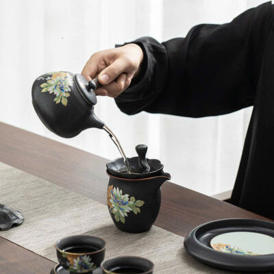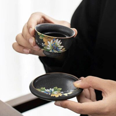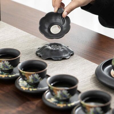 – Các món: Ấm trà, chén tống, lọc trà, và 6 chén trà, đế ấm, 6 đế chén