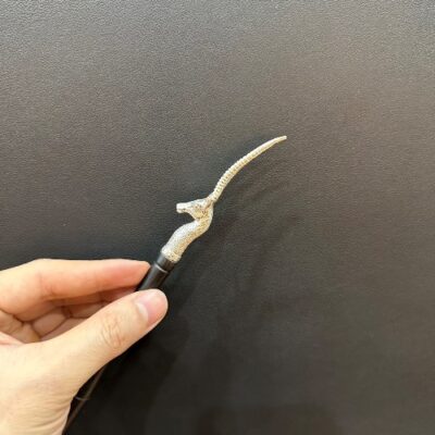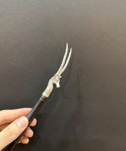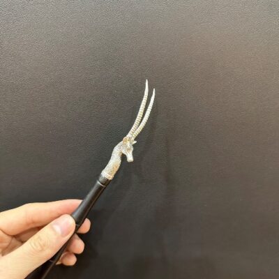 Cây mở nắp ấm tetsubin bằng bạc nguyên chất 999 cán gỗ hình đầu linh dương đẹp.