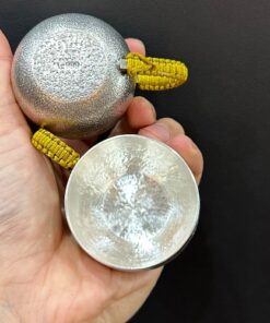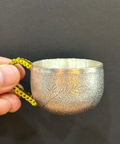 Chén bạc làm ly uống trà nguyên chất 999 thủ công khắc trúc có quai 50ml đẹp CB89.