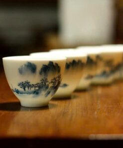 Đặt mua Bộ chén cảnh đức vẽ tay sơn thuỷ đẹp 6 cái 60ml dáng cao đẹp CS01