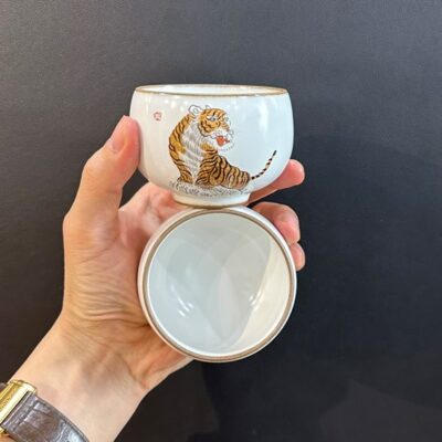Chén cảnh đức gốm thái hội vẽ tay hổ quay đầu thủ công 80ml CS42