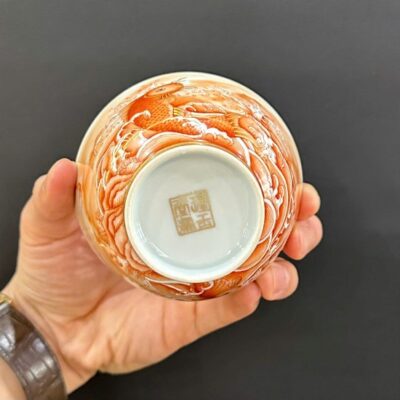 Chén cảnh đức gốm phàn hồng thái vẽ tay rồng thủ công cao cấp 120ml CS93