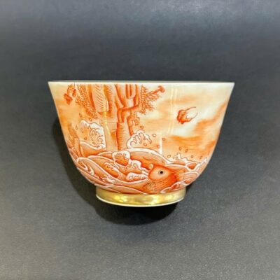 Đặt mua Chén chủ sứ cảnh đức phấn thái cao cấp vẽ tay cá vượt vũ môn đẹp 140ml CS68