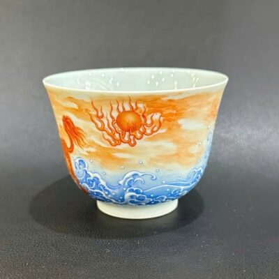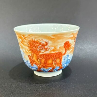 Chén chủ sứ cảnh đức phấn thái cao cấp vẽ tay kỳ lân uống trà ngon 120ml CS92