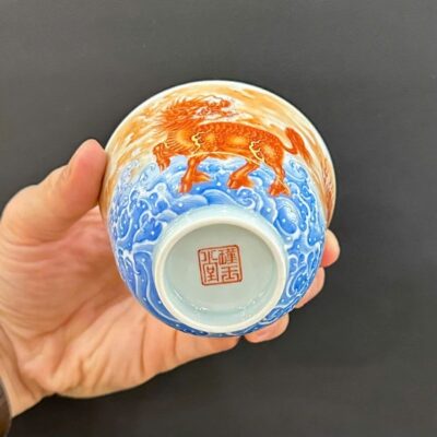 Đặt mua Chén chủ sứ cảnh đức phấn thái cao cấp vẽ tay kỳ lân uống trà ngon 120ml CS92