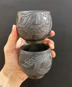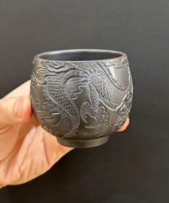 Chén chủ uống trà cao cấp gốm nê hưng hỏa biến khắc rồng to đẹp 120ml CNH45