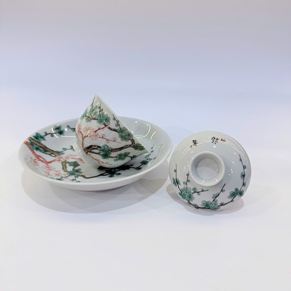 Chén khải cảnh đức cao cấp men ngũ thái vẽ tay hoa nở đẹp 150ml AS77