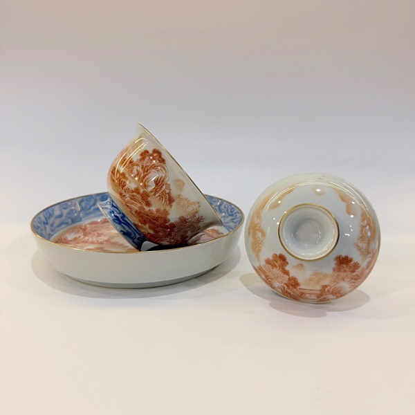 Chén khải cảnh đức sứ phấn thái đỏ phèn cao cấp vẽ tay sơn thủy đẹp 180ml AS79