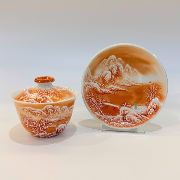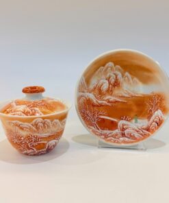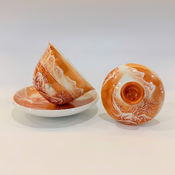 Chén khải cao cấp sứ phấn thái cảnh đức vẽ tay sơn thủy dạng tiềm pha trà 160ml AS71 160ml AS71