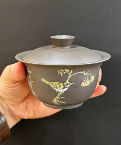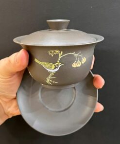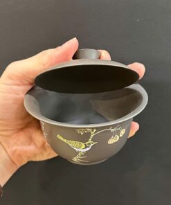 Chén khải pha trà cao cấp tử sa nê hưng thủ công vẽ chim đẹp 180ml AS29