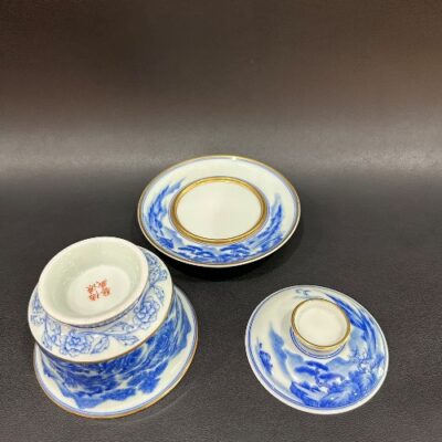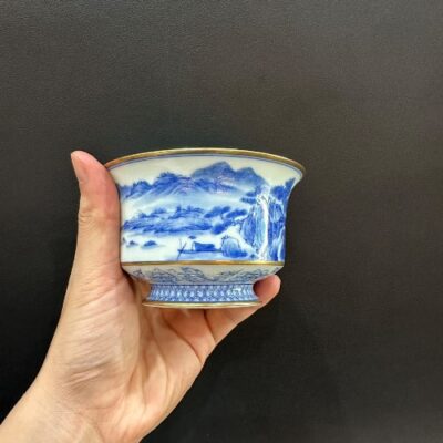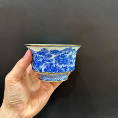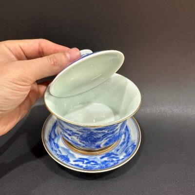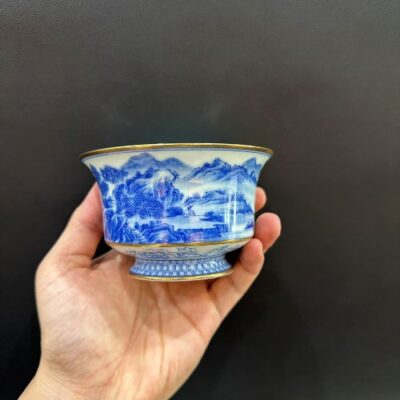 Chén khải sứ cảnh đức cao cấp vẽ tay sơn thủy viền tinh xảo vàng 280ml làm tiềm pha trà.