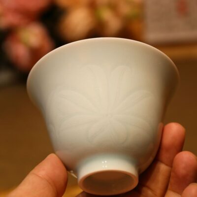 Đặt mua Chén Khải Sứ Cảnh Đức Trắng Vân Hoa Nổi Dáng Cao 150ml AS86