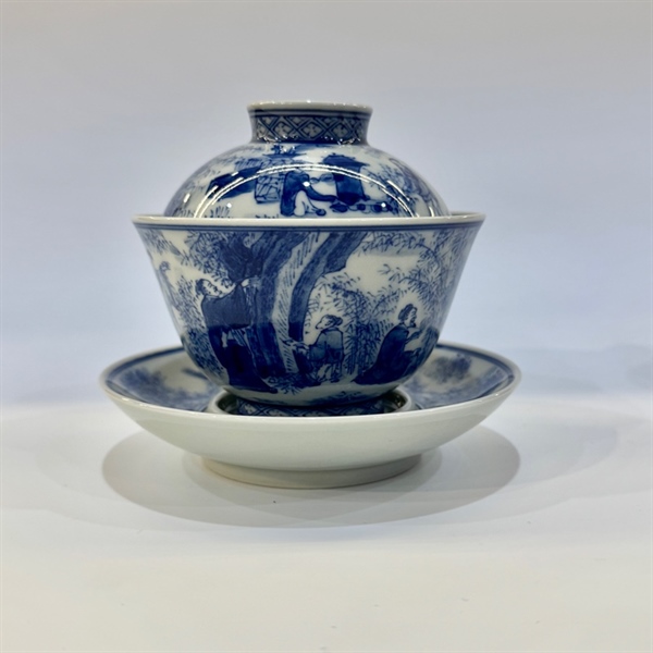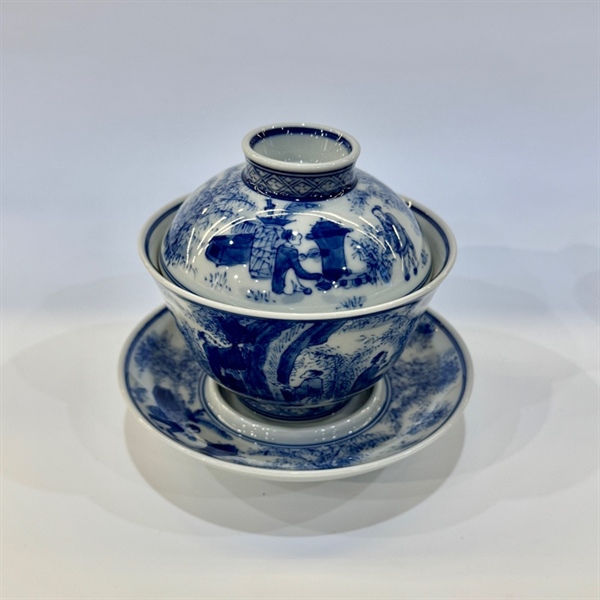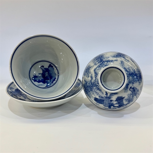 Chén khải sứ cao cấp vẽ tay thôn cư đồ 190ml AS56