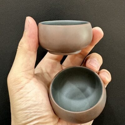 chén nê hưng gốm khâm châu làm ly trà nhỏ thủ công đẹp hoả biến màu nâu đen thủ công.