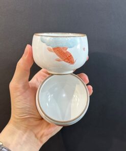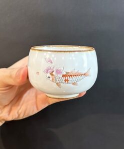 Chén sứ cảnh đức cao cấp họa cá chép vẽ tay nung củi đẹp 80ml CS52