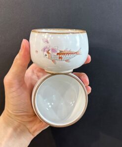 Đặt mua Chén sứ cảnh đức cao cấp họa cá chép vẽ tay nung củi đẹp 80ml CS52